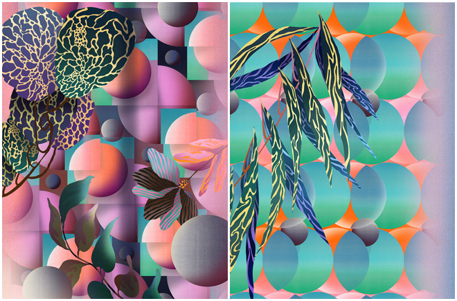 Early 2016, I got an old 1980s photocopier and I started experimenting with gradient sheets that I made on the machine. I made scans and put them in duotones creating a library of colours and backgrounds and began making illustrations with them, first personal pieces and record sleeves.