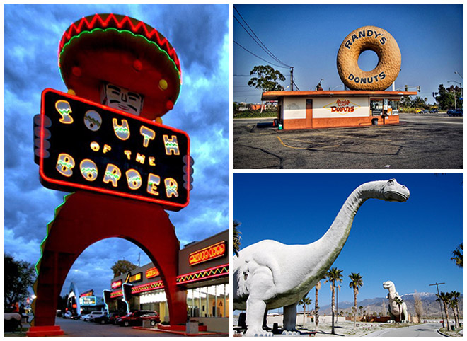 In California you have the giant donut, those stores and stuff like that. There’s a lot of roadside attraction, feeling like a kid in a car, driving by these giant fibreglass dinosaurs for Dino Land, and you want to stop. Pee-wee’s Playhouse is where you can stop at every roadside attraction in the world.